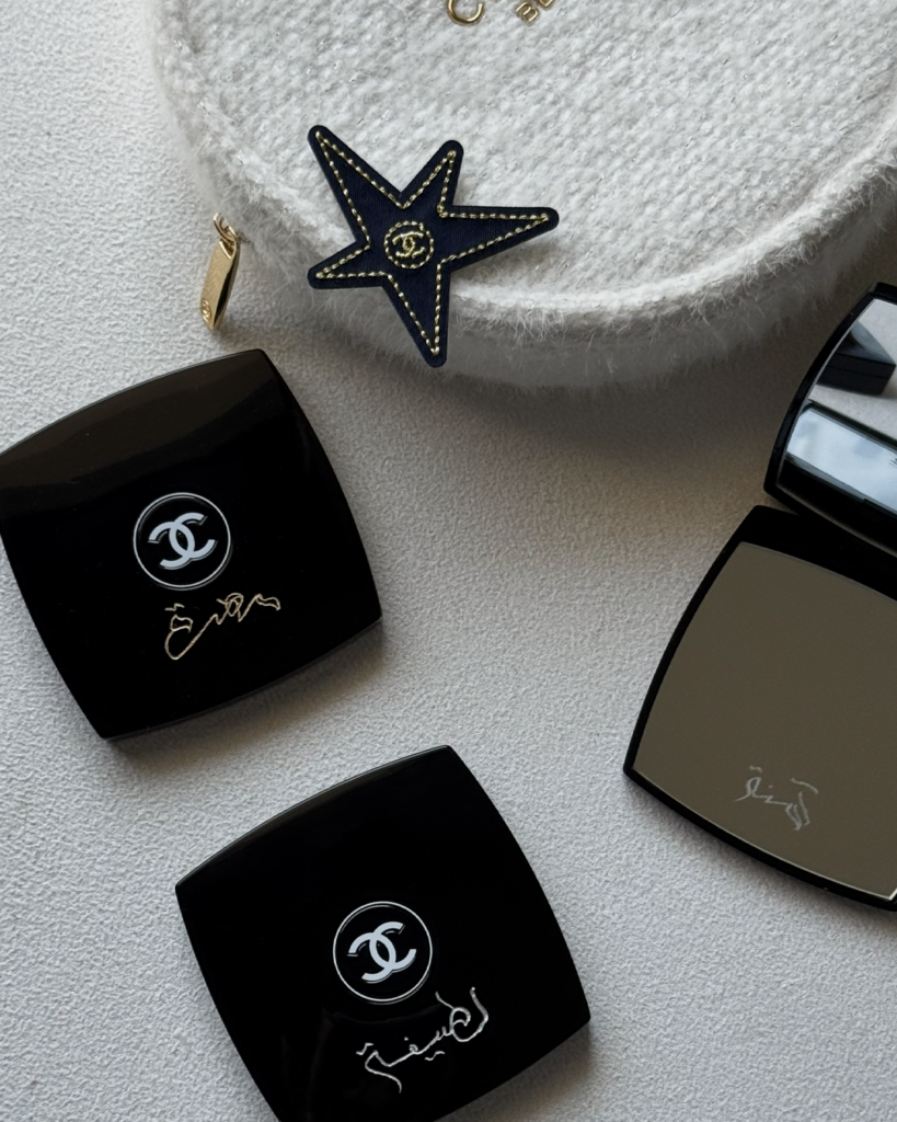 Iconic Chanel pieces, reimagined with hand-engraved Arabic lettering.